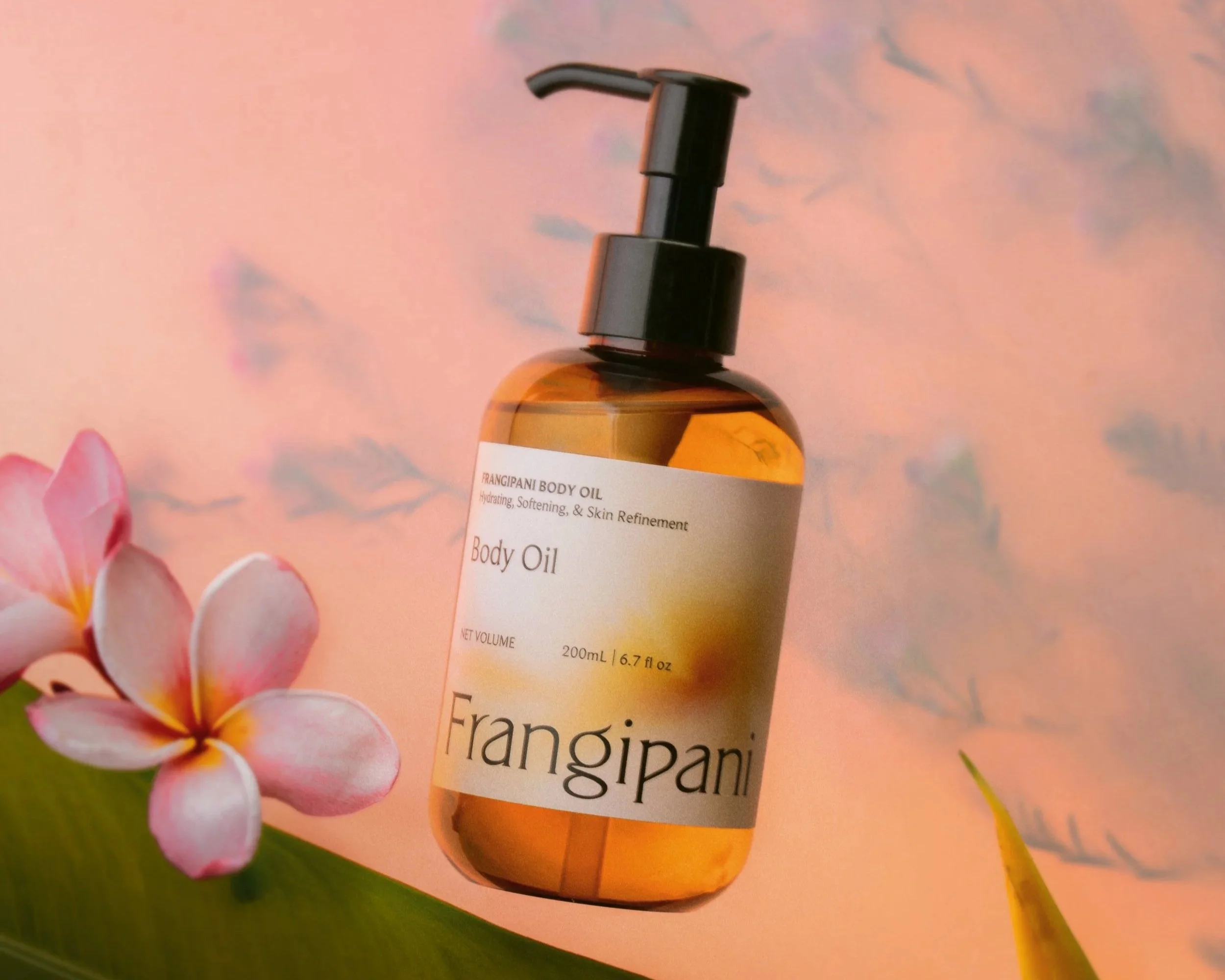 A lightweight, deeply nourishing body oil infused with the soft floral warmth of frangipani.